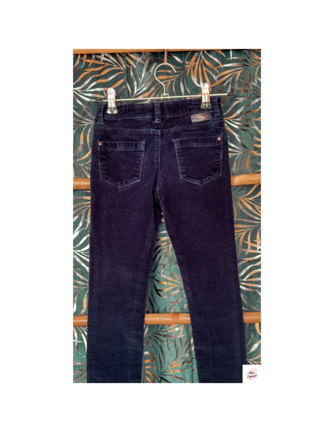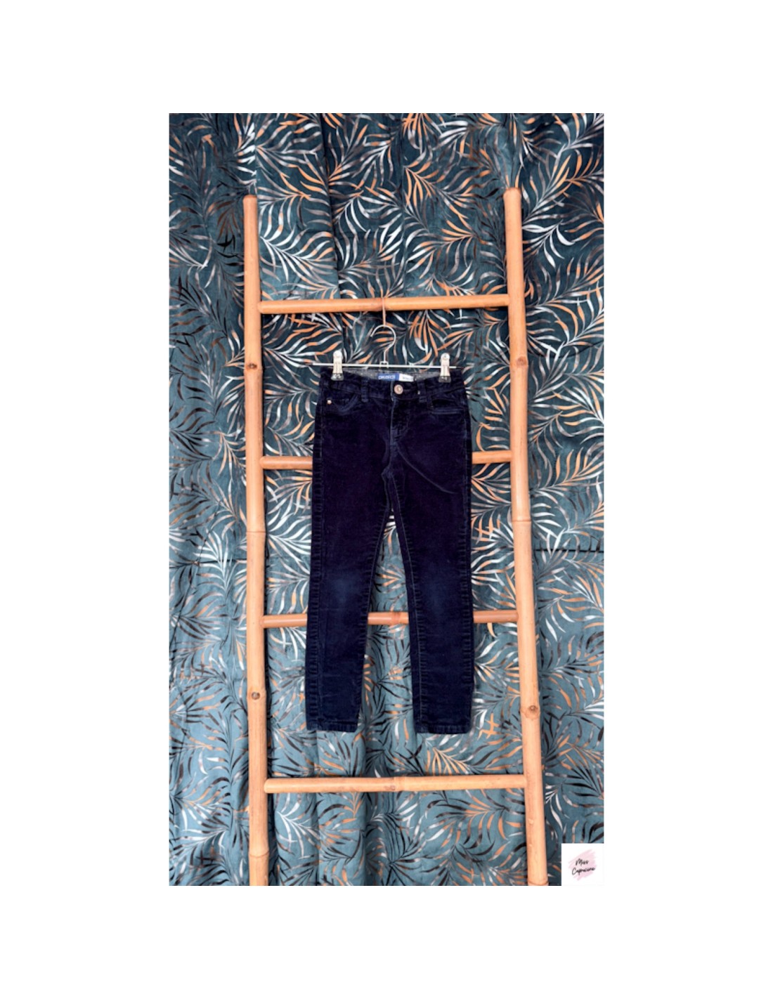 - le pantalon roxanne de chez okaïdi est un modèle skinny bleu en velours, idéal pour les enfants de 5 ans (110 cm).