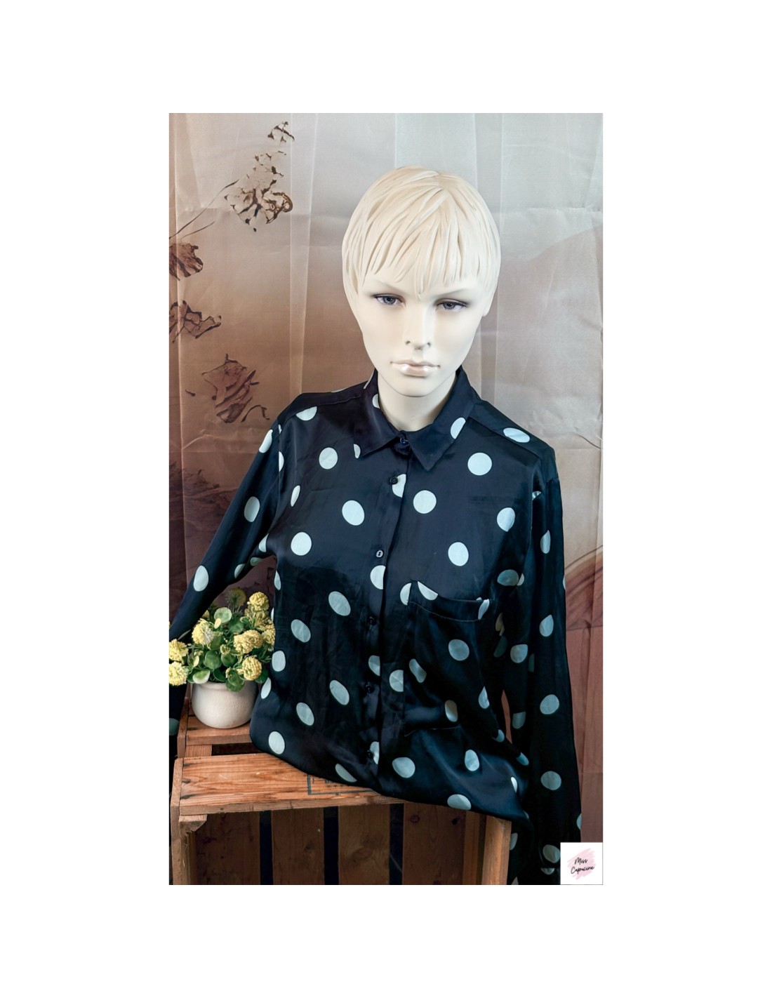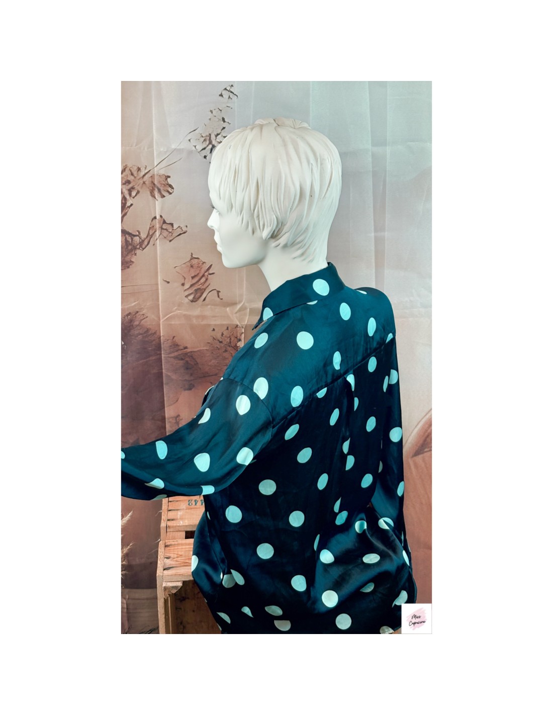 - Son motif à pois multicolores noir et bleuté ajoute une touche ludique et dynamique, parfait pour égayer vos tenues.